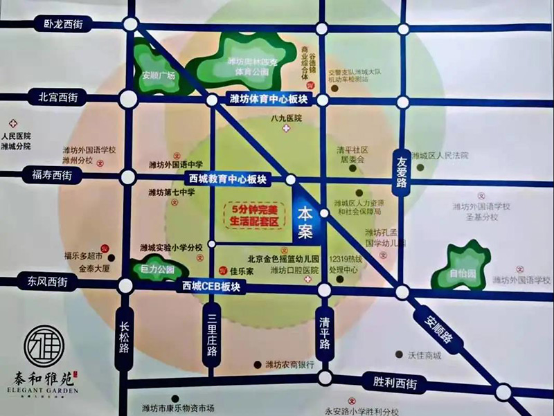 該項目位于濰城區核心地段清平路與學府街交叉口,歸屬稀缺10層電梯洋房產品,包含100套住宅及11套商業。所處區域的醫院、學校及商業配套齊全,東有外國語學校,西有濰城實驗小學、濰坊第七中學及外國語中學,北有八九醫院及谷德錦商業綜合體,南有佳樂家及濰坊口腔醫院,可謂一個配套較為成熟的社區,書香門第,宜室宜家。
