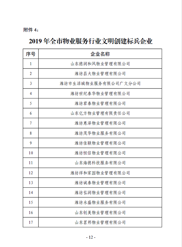 該項工作根據《關于深入開展物業(yè)服務行業(yè)文明創(chuàng)建標準建設年活動的通知》(濰建物字[2019]2號)、《關于在全市物業(yè)服務行業(yè)開展文明創(chuàng)建活動的通知》(濰建物字[2017]1號)等文件精神,通過自行申報、基層推薦、集體研究、公示等程序評選出來的,要求評選出的先進典型充分發(fā)揮典型示范帶動作用,推動全市物業(yè)服務行業(yè)文明創(chuàng)建工作引向深入。